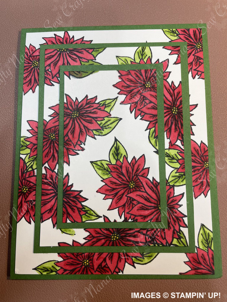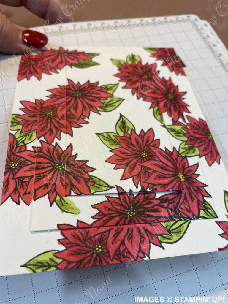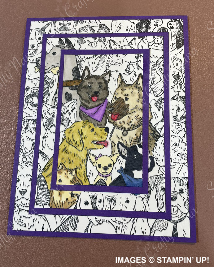 If using outline images like mine, you will color them next. I used Stampin’ Blends alcohol markers for my images, in a variety of colors. For the dog image, I only wanted to color some of the dogs, but you may want to do all of them. For the Poinsettias, I thought about leaving some white, but ended up coloring all of them red. Coloring is a very personal thing, so you color them however you like and with whatever tools you prefer. When you are finished, your image will look something like this.